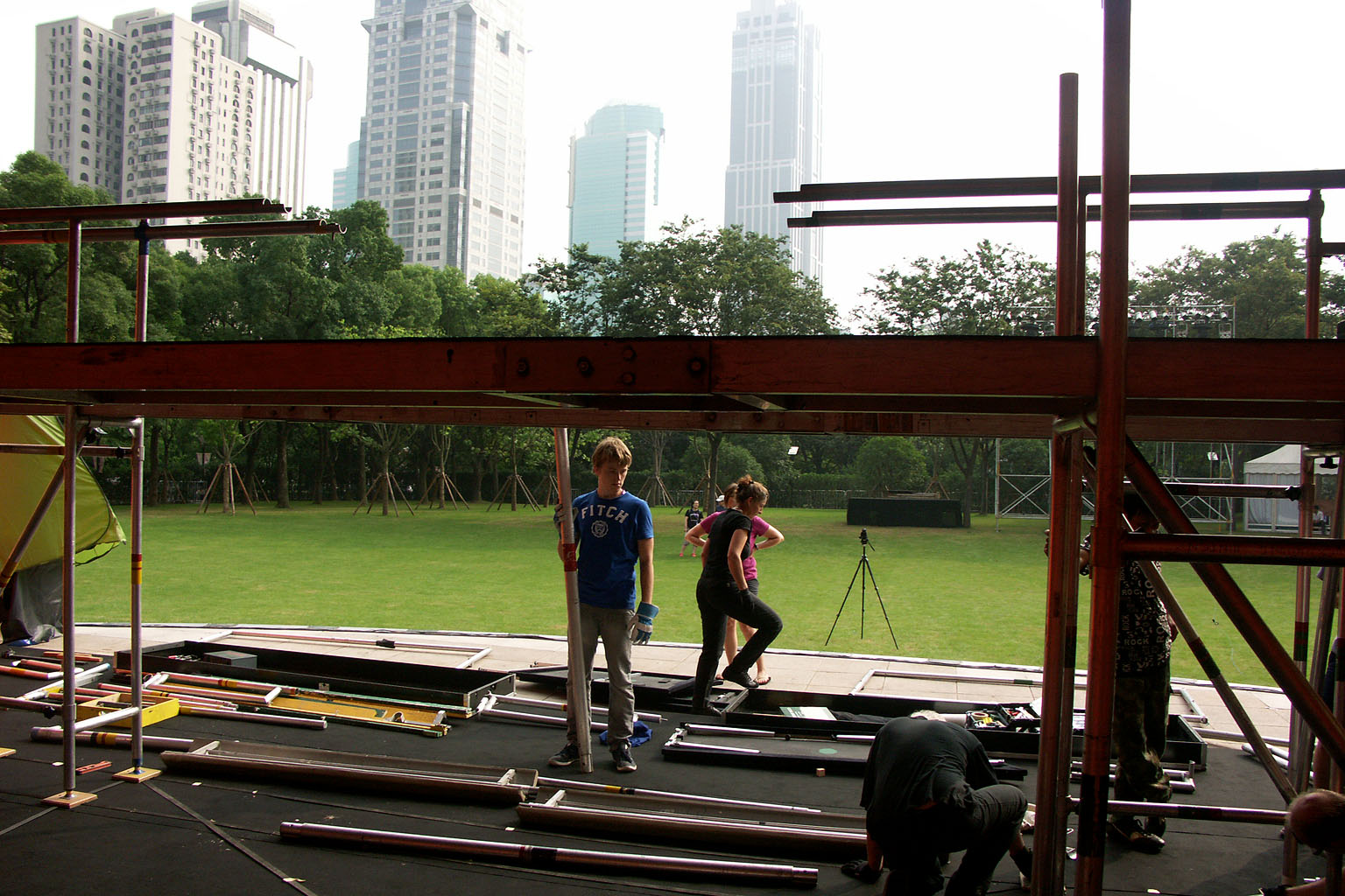 5 Stunden. Die aufgebaute Bühne hat eine Breite von