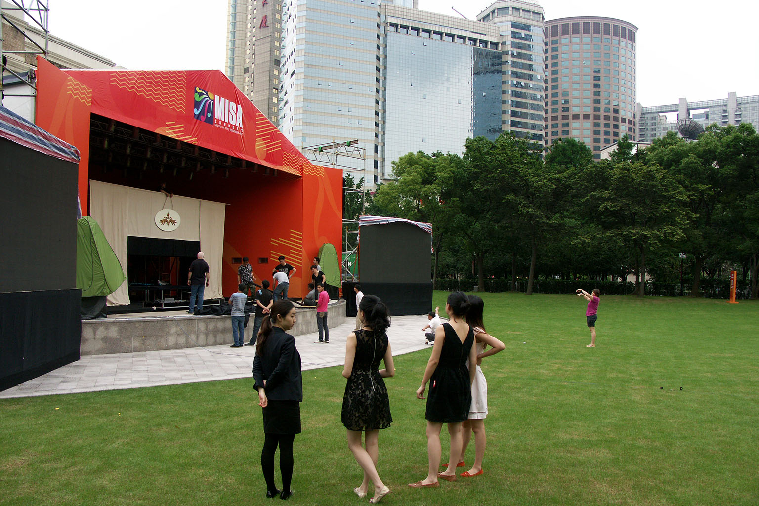 stellen. Auf der Bühne wird Strom für die Licht- und Tonanlage